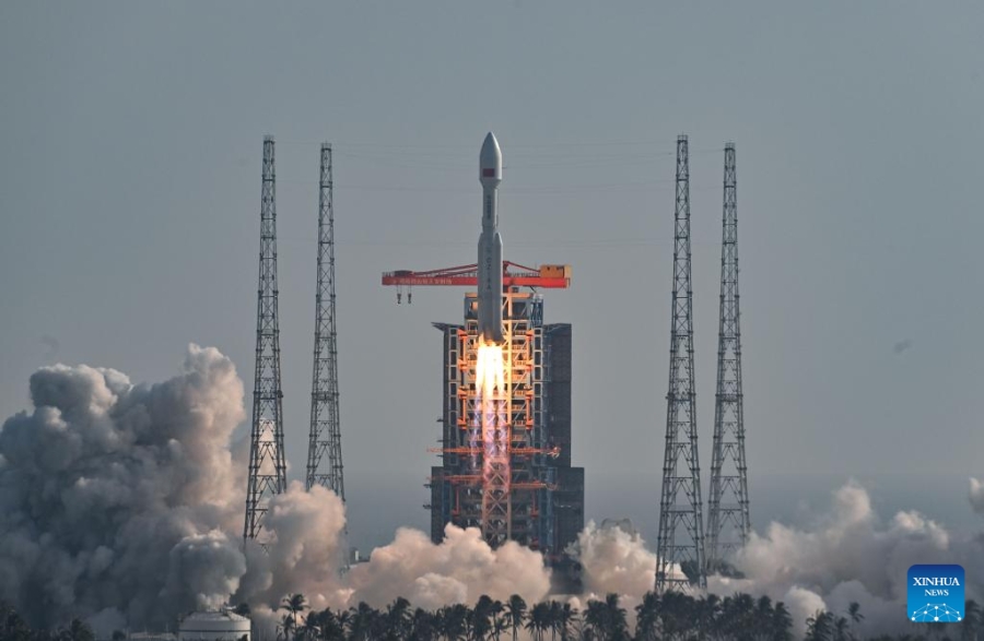 A Long March-8A carrier rocket carrying the 14th group of low-orbit internet satellites blasts off from the Hainan commercial spacecraft launch site in south China's Hainan province, Dec. 6, 2025. [Photo/Xinhua]