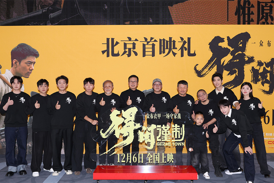 Cast and crew of "Gezhi Town" pose for a photo at the film's premiere in Beijing, Dec. 6, 2025. [Photo courtesy of Askwin]
