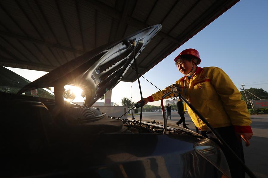 A staff member works at a gas station in Shangqiu City, central China's Henan Province, May 1, 2024. [Photo/Xinhua]