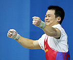 Podium de la catégorie des 69 kg messieurs d'haltérophilie des Jeux Olympiques d'Athènes: