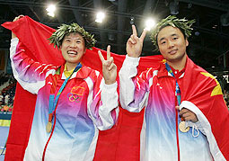 Le soir du 19 ao?t, les deux Chinois Zhang Jun et Gao Ling ont participer à la finale du double mixte du tournoi de badminton des jeux Olympiques d'Athènesé et en ont raflé la médaille d'or. Voilà le podium du badminton double mixte :